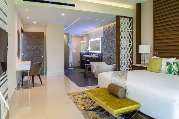 The expansive Two Bedroom Ocean View suite provides a sanctuary of relaxing comfort. With 1834 sq. ft. of contemporary elegance, the suite features a spacious terrace with panoramic views of the Caribbean Sea.