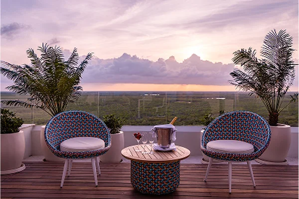 Asciende a nuestra elegante azotea frente al mar en Cancún, con una piscina infinita con vistas al Caribe, una decoración elegante en blanco y madera, y exuberante vegetación. Relájate durante el día, contempla las puestas de sol por la noche y disfruta de cócteles infusionados con frutas en un ambiente de lujo puro y relajado.
