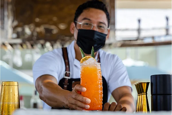 Exclusivamente servido en nuestro bar en la azotea solo para adultos, este cóctel lujoso se disfruta mejor con vistas panorámicas al océano y el impresionante paisaje del resort debajo.